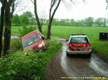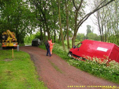 Toornwerd – Op woensdag 16 is een bestelbusje op de W.J. Dethmersweg het talud ingegleden en vast komen te zitten. De Middelstummer brandweer werd gewaarschuwd omdat men bang was dat het busje verder zou kantelen. Met behulp van twee lieren is het busje door een bergingsbedrijf weer op het pad getrokken. Zie ook 112Middelstum