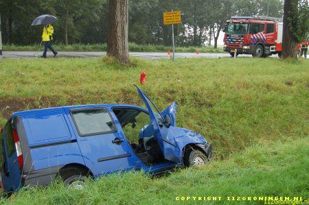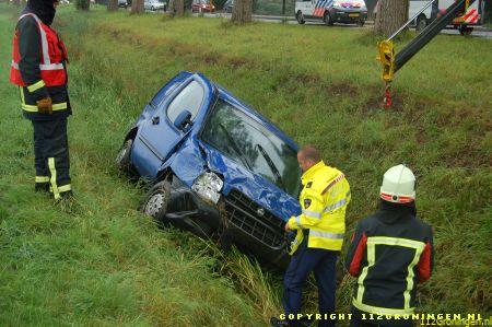 Blijham – Op de Winschoter Hogebrug in Blijham zijn dinsdagmiddag 2 auto`s in botsing gekomen door nog onbekende oorzaak. 1 auto kwam in een droge sloot terecht. Omdat de melding was een waterongeval werden naast de brandweerkorpsen van Winschoten en Bellingwedde ook de duikers van Delfzijl opgeroepen. De duikers bleken achteraf niet nodig. Een ambulance is ter plaatse gekomen om de bestuurders te behandelen aan hun verwondingen. Onbekend is of ze naar het ziekenhuis zijn vervoerd. De VOA maakte van het ongeval rapport op. Woensdag een politiepersbericht.