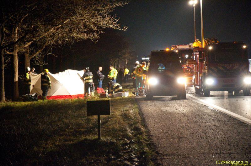Dit slachtoffer zat in een auto die ten gevolge van een eenzijdig ongeval tegen een boom reed. Deze bestuurder is op de plek van het ongeval aan zijn verwondingen overleden en moest door de brandweer van Drachten worden bevrijd. Op het zelfde moment was een paar honderd meter terug op de A7, nog een ongeval. Hier was een Golf achter op een BMW gereden. Bij dat ongeval waren twee gewonden. Bij de BMW was ook sprake van beknelling, daar is de brandweer van Beetsterzwaag voor opgeroepen Alle betrokken voertuigen moesten door een berger worden afgevoerd De VOA van politie Fryslan doet onderzoek naar de juiste toedracht van de beide ongevallen.