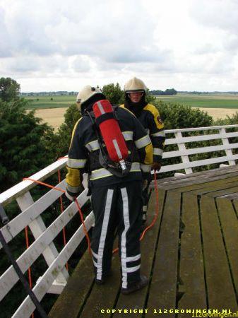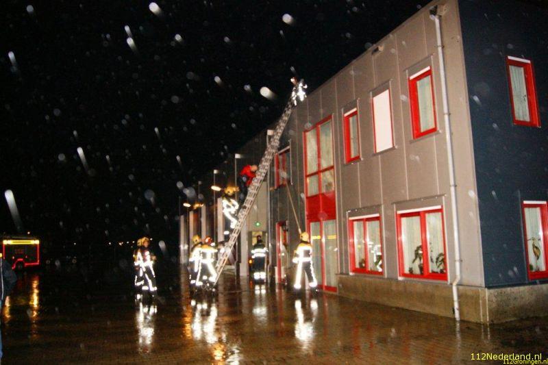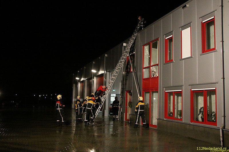 Zuidbroek - Een man heeft zondagavond bij een bedrijf annex woning aan de Beneluxweg in Zuidbroek enige tijd vastgezeten op het dak.