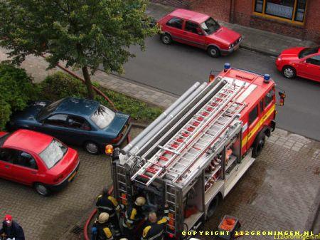 De man was het dak opgeklommen omdat ze last hadden van waterlekkage in de woning, nadat de man de waterafvoer weer had vrijgemaakt kon hij het dak niet meer afkomen. De gealarmeerde brandweer kwam snel ter plaatsen en wist de man via een ladder naar beneden te halen.