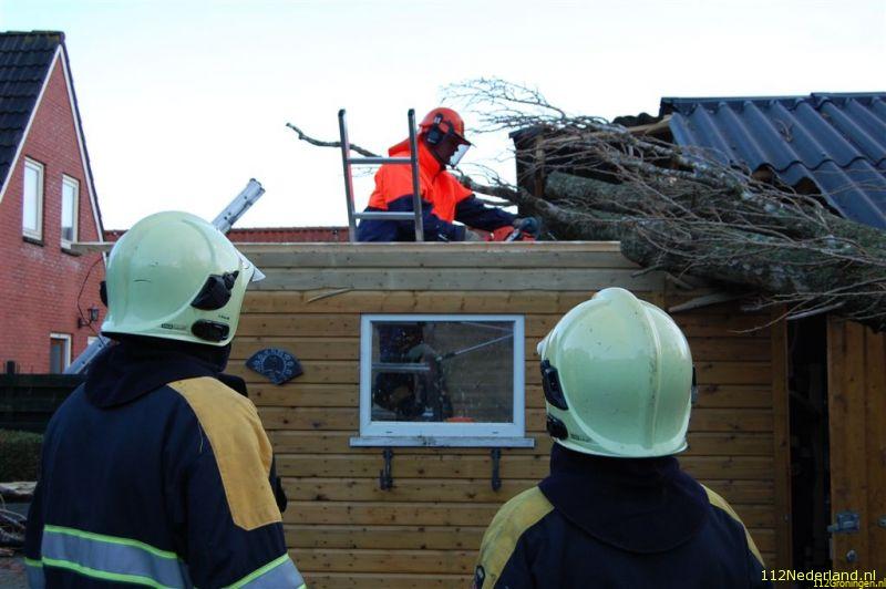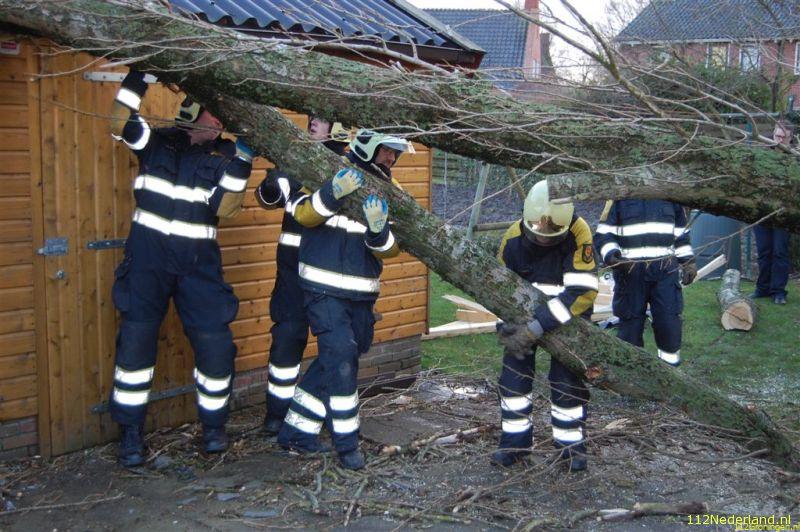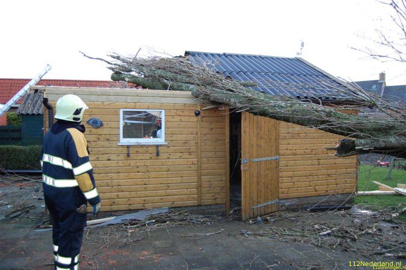 Ten Boer - Brandweer Ten Boer moest vanmiddag uitrukken naar de Gaikingastraat waar een boom op een garage was gevallen.