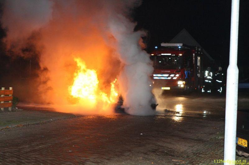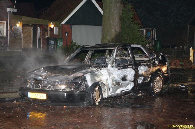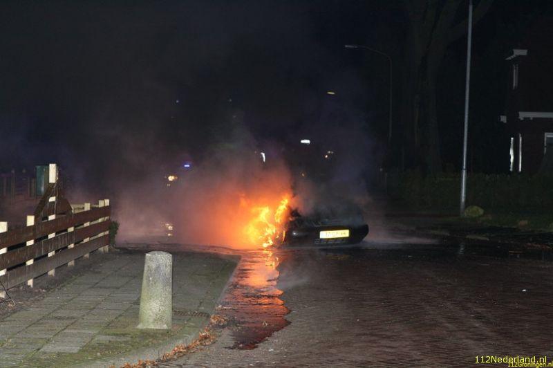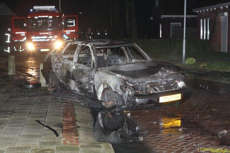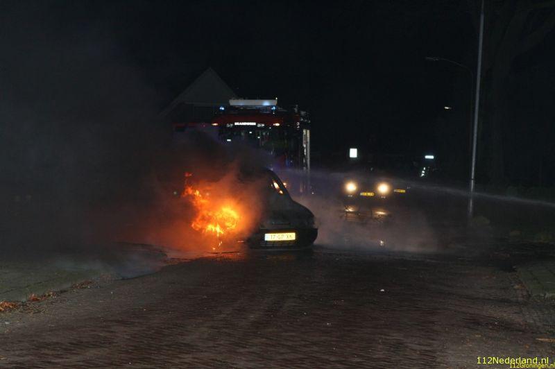 De 36 jarige eigenaar vd auto ging toevallig naar buiten en rook toen een verdacht brandlucht bij de auto en zag dat er rook uitkwam . Toen de man de deur vd auto opende aan stuurkant begin de auto spontaan te starten en vatte op dat moment ook vlam omdat de auto naast zijn huis op de oprit stond heeft hij de auto de weg op geduwd waar hij tegen aan paal tot stilstand kwam en toen helemaal vlam vatte. De brandweer en politie waren snel ter plaatste en omdat er ontploffings gevaar was i.v.m volle gastank werd iedereen op veilig afstand gehouden door de brandweer. De Saab brande volledig uit en zijn laatste rustplaats zal de autosloperij worden . Rond 00:30 uur was brand meester en werd de auto latert opgehaald door een plaatselijke bergingsbedrijf.