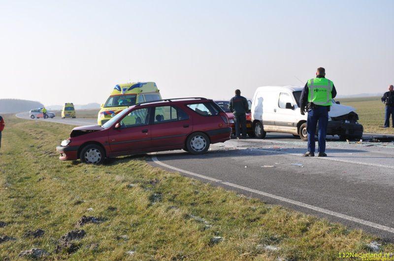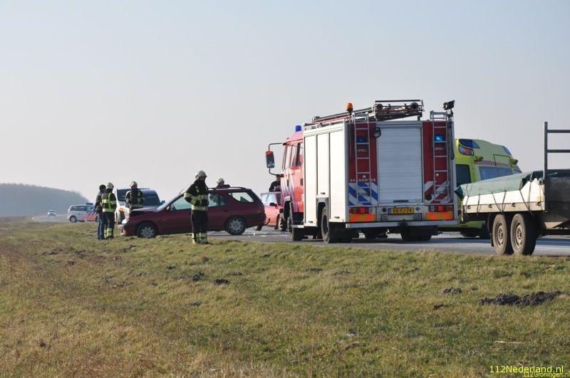 Aldaar vond een kop-staart aanrijding plaats tussen vier voertuigen. Het voorste voertuig was een bedrijfsauto met daar achter een aanhangwagen. Bij het ongeval raakten twee mensen licht gewond. Een 51-jarige automobilist uit Ternaard wilde zijn auto met aanhanger gaan controleren in verband met een technisch probleem. Hij remde af, gaf richting aan en wilde vervolgens de vluchtstrook op rijden. Een achteropkomende automobilist, een 50-jarige inwoner van Nes (D) zag dit te laat en botste tegen de aanhangwagen. Ook twee andere auto’s, die bestuurd werden door een 50-jarige inwoner van Metslawier en een 80-jarige inwoner van Gytsjerk, botsten op de voor hun rijdende auto’s. De twee laatst genoemde automobilisten raakten licht gewond en werden per ambulance overbracht naar ziekenhuizen in Dokkum en Leeuwarden. Niemand van de inzittenden raakte bij het ongeval bekneld. De Lauwerseewei tussen Dokkum en Metslawier is een tijd lang afgezet geweest voor het verkeer. Bureau Verkeersongevallen Analyse van politie Fryslân heeft een onderzoek ingesteld naar de exacte toedracht. (www.rtvnof.nl)