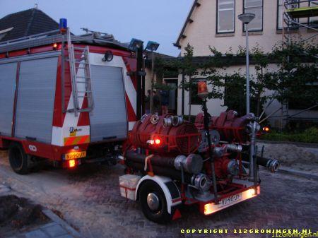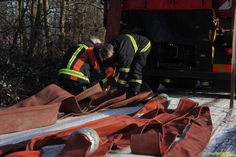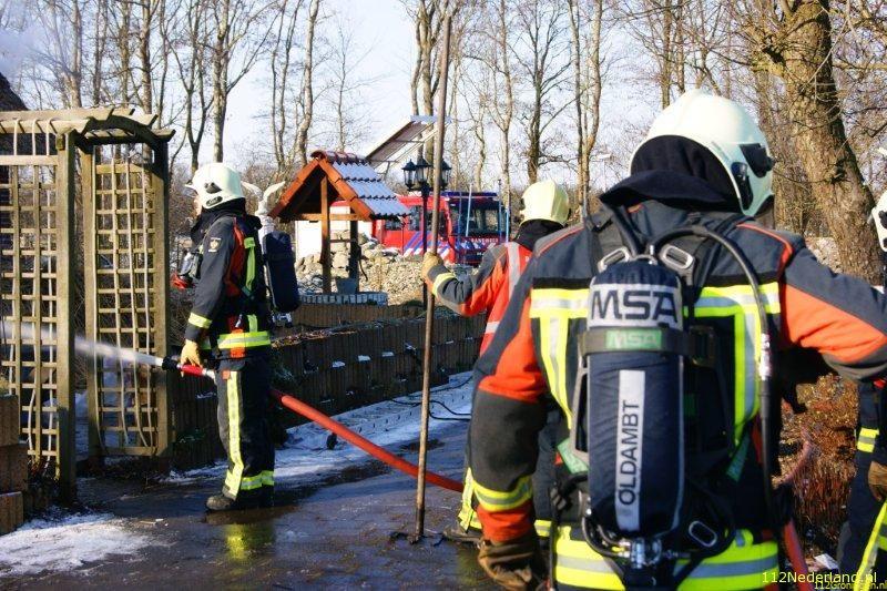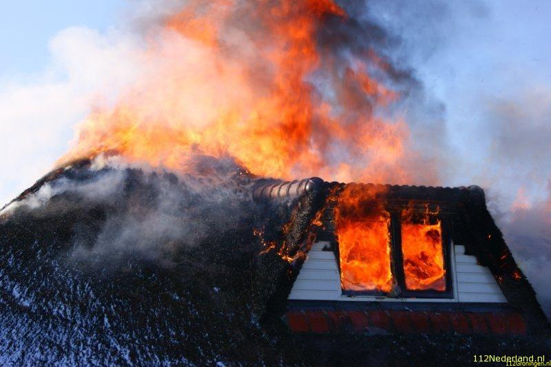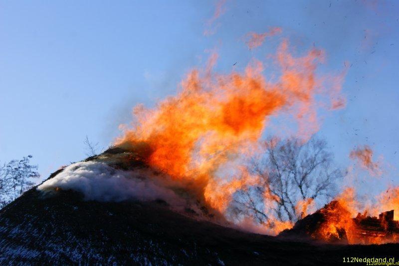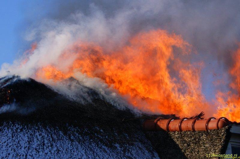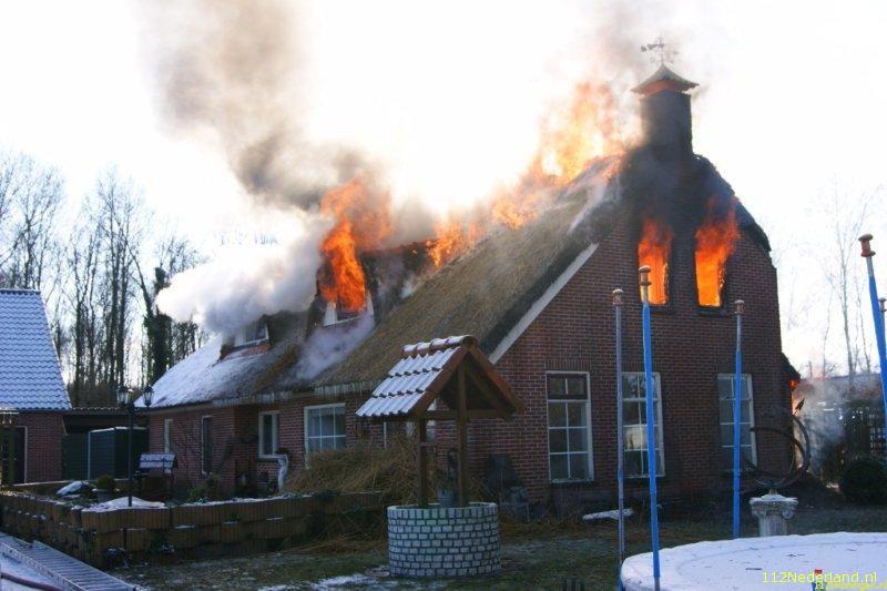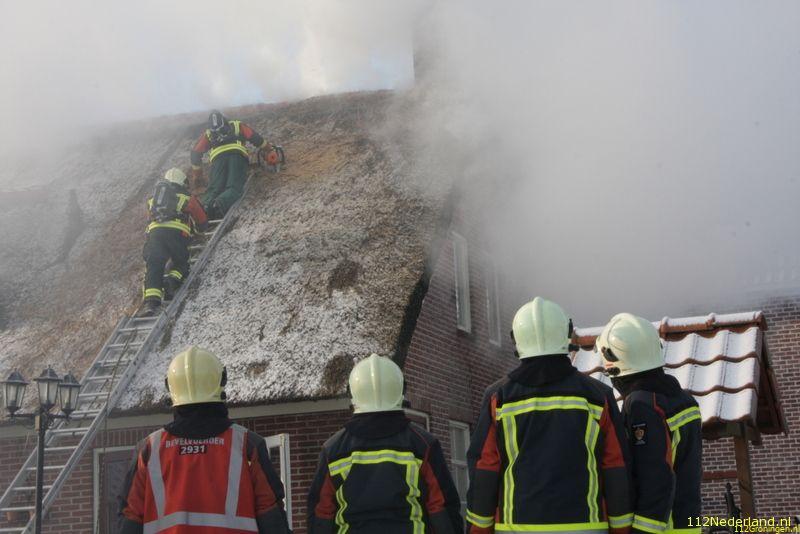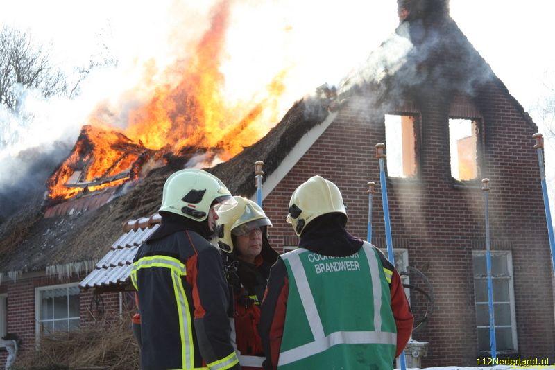 Toen de brandweer ter plaatse kwam was het vuur al overgeslagen naar de rieten kap. Al snel werd een tweede bluswagen opgeroepen en enkele minuten later werd ook het grootwatertransport gealarmeerd. Omdat de woning in het buitengebied staat moest het water uit een kanaal komen, een kilometer verderop aan de Ontsluitingsweg.