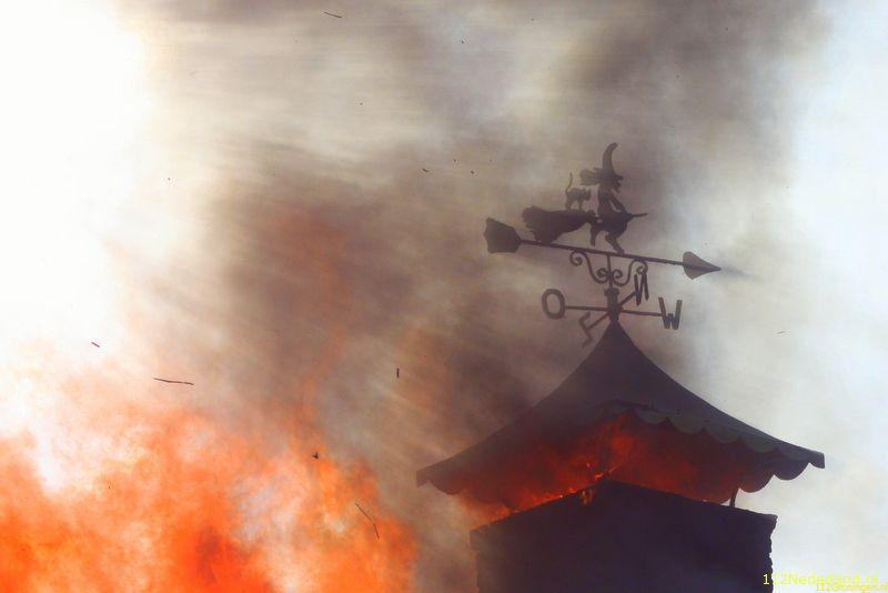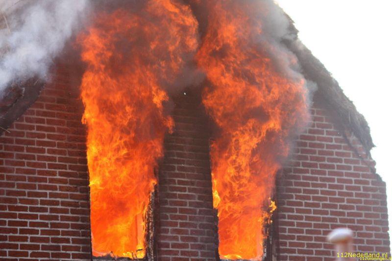 Tegen kwart voor één sloegen de vlammen uit het dak en niet veel later stortte het dak in. Het nablussen zal nog enkel uren in beslag nemen. De bewoners hebben met behulp van de hulpverleners en omstanders aan het begin van de brand nog diverse persoonlijke spullen kunnen redden uit het pand.
