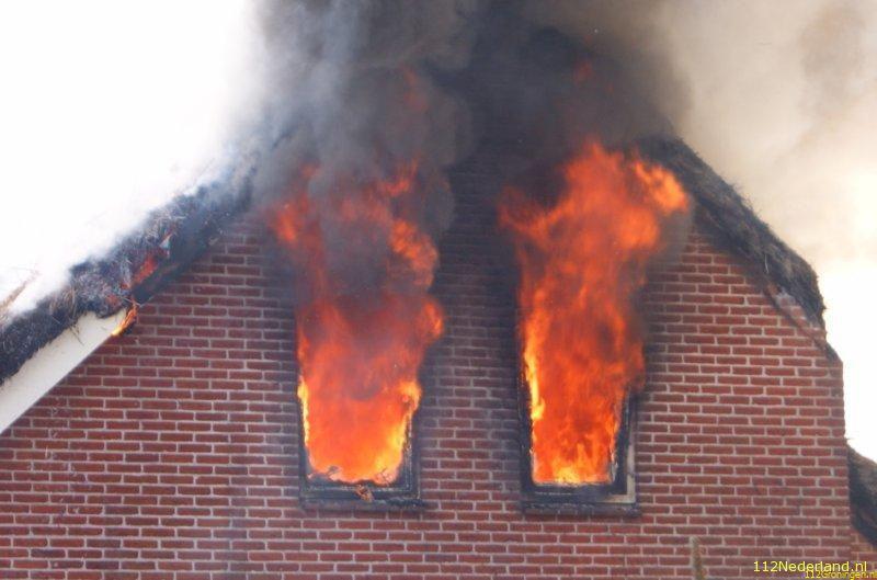 Ondertussen werd gepoogd het vuur op het dak te stoppen middels het creëren van stoplijnen aan beide zeiden van het dak. Helaas voor de bewoners (en de brandweerlieden) was het vuur al te ver het riet ingekropen, waardoor het niet lukte het vuur te stoppen. Op dat moment was de woning niet meer te redden. Daarom werd na ongeveer twee uur besloten het blussen te staken en de brand naar buiten te laten komen.