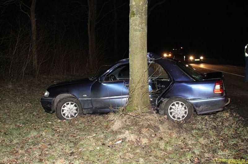 Met de linkerzijkant botste de wagen vervolgens tegen een boom. Na het ongeval kon de vrouw ongedeerd uitstappen. Wel kreeg ze van de ter plaatse gekomen politieagenten mee, om bij eventuele klachten naar de huisarts te gaan, aangezien de schade aan de auto groot was. Of gladheid een rol speelde, is onbekend.