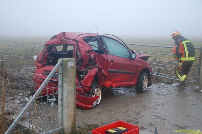 Passerende agenten vonden de auto op een dam naar een weiland aan de Onderdendamsterweg in Winsum. Het voertuig lag op de zijkant. De bestuurder werd door de brandweer uit zijn benarde positie bevrijd en werd in zorgwekkende toestand overgebracht naar het ziekenhuis. Na onderzoek bleek dat het eenzijdige ongeval vermoedelijk eerder in de nacht had plaats gevonden. De politie onderzoekt de toedracht van het ernstige ongeval en maakt een analyse. De zwaar beschadigde personenauto werd afgesleept.