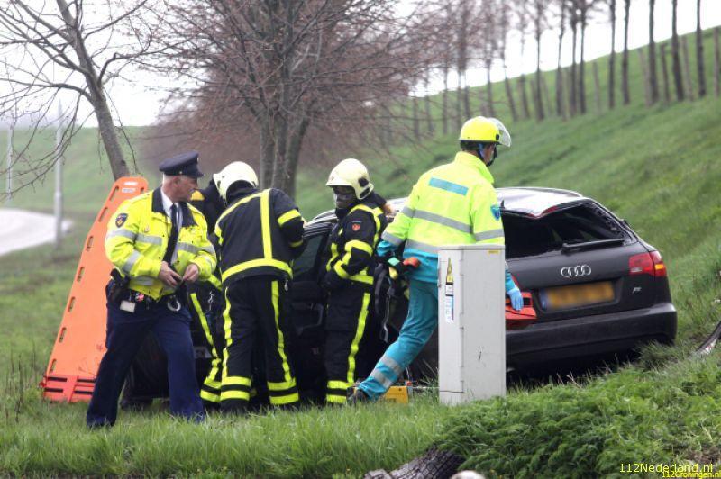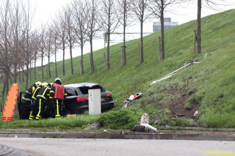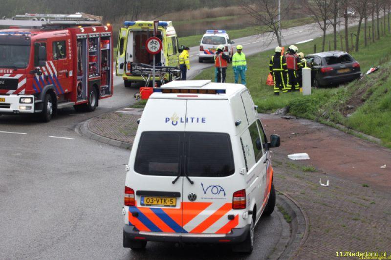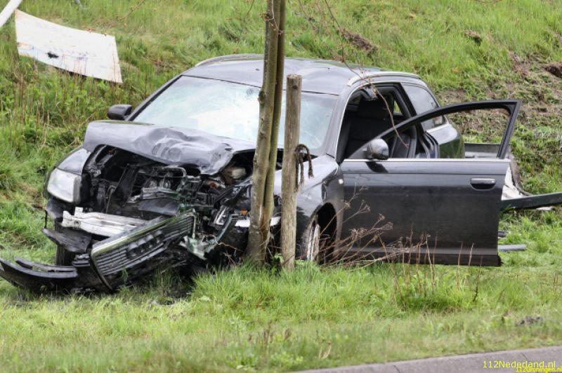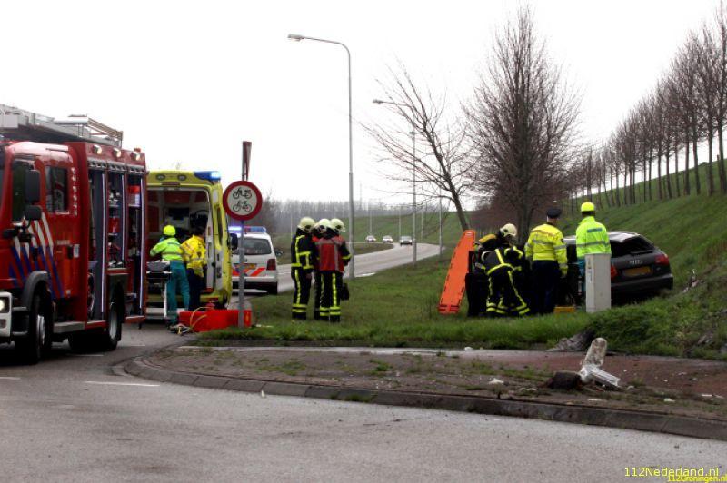 Een 55-jarige bestuurder uit Heerenveen raakte vanaf de Mc Donalds enkel malen in de berm en reed vervolgens bij de rotonde rechtdoor. Hierdoor belandde de auto via een lantaarnpaal tegen een boom.