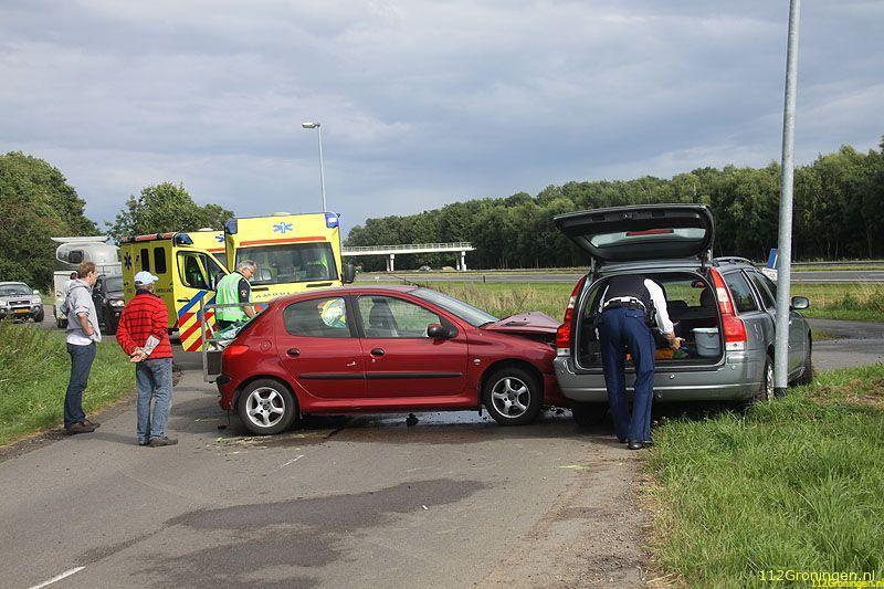 De bijrijdster van de man is door medewerkers van de ambulancedienst onderzocht, zei bleek geen verwondingen te hebben. De bestuurder(ster) van de andere auto bleef ongedeerd. De politie doet onderzoek naar de oorzaak van het ongeval. De man is overgebracht naar het ziekenhuis in de stad Groningen.