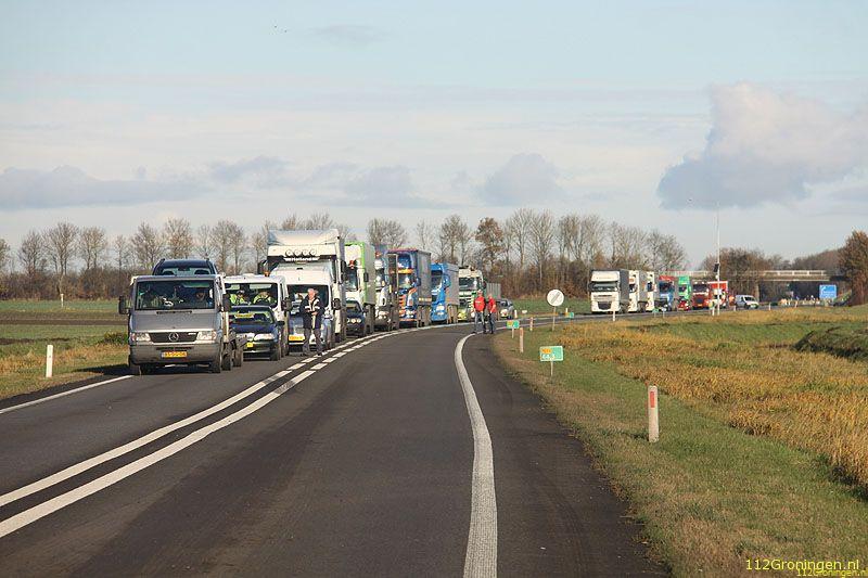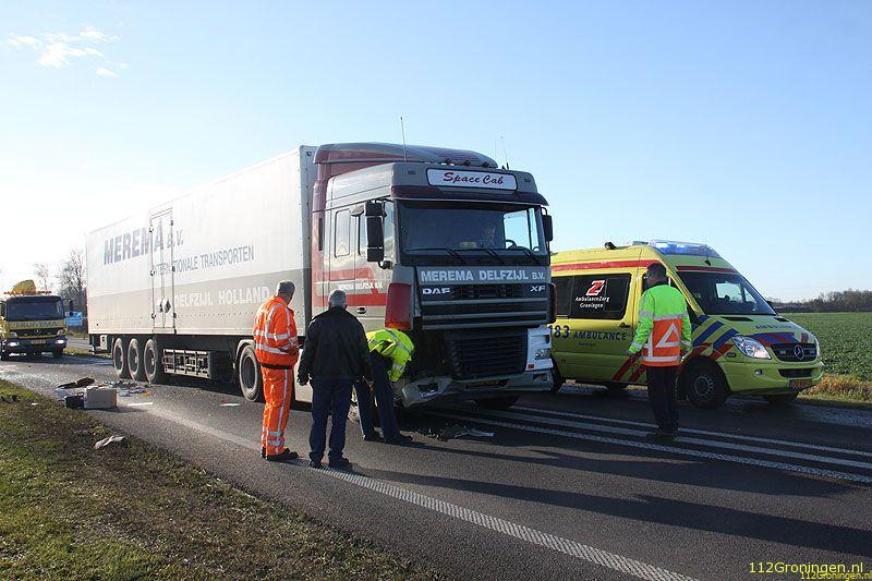 Zuidbroek - Een oudere automobilist is woensdagochtend met de schrik vrijgekomen toen hij vermoedelijk op de N33 bij Zuidbroek wou keren op de rijbaan en vervolgens van achteren werd aangereden door een vrachtwagen.