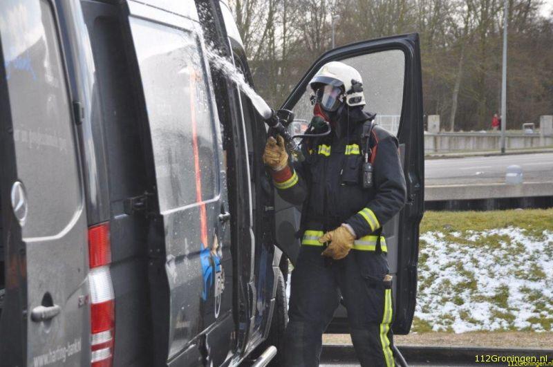 Groningen - Donderdagmiddag werd er een autobrand doorgegeven bij de Hornbach in Groningen. Ter plaatse bleek een accu vlam te hebben gevat in een bedrijfsbus door kortsluiting.