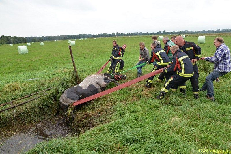 Ter plaatse stond inderdaad een paard in de sloot maar de brandweerlieden waren echte cowboys want in nog geen vijf minuten stond het paard weer op het droge. Hoe lang of het paard in de sloot heeft gestaan is niet bekend.