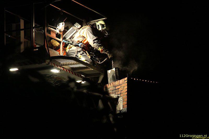 Glimmen - De brandweer van Haren en de stad Groningen zijn vrijdagavond ruim een uur bezig geweest met een schoorsteenbrand op de Nieuwe Schoolweg in Glimmen.