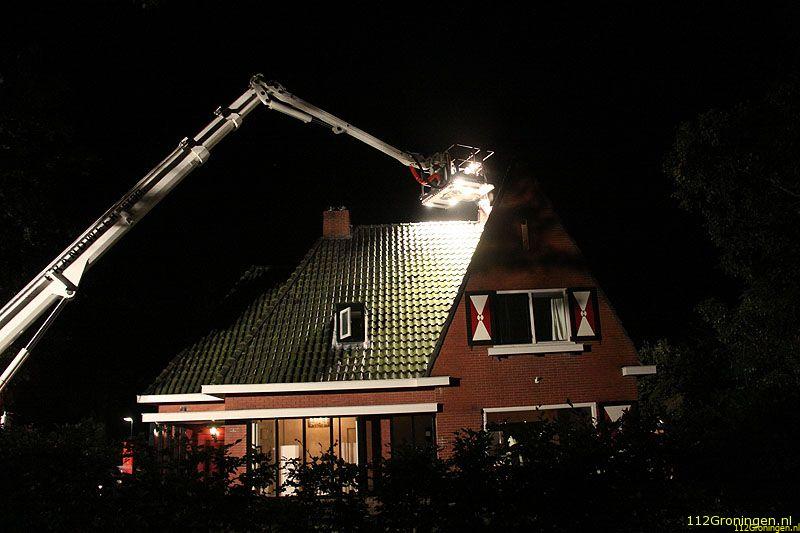 De schoorsteen van de woning is met behulp van de hoogwerker geveegd, terwijl andere brandweerlieden het as wat daarbij naar beneden viel opvingen en bij de brandweerwagen bluste.