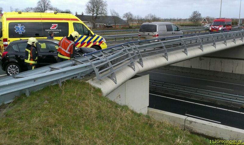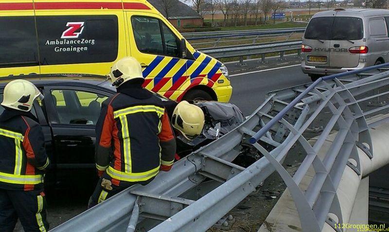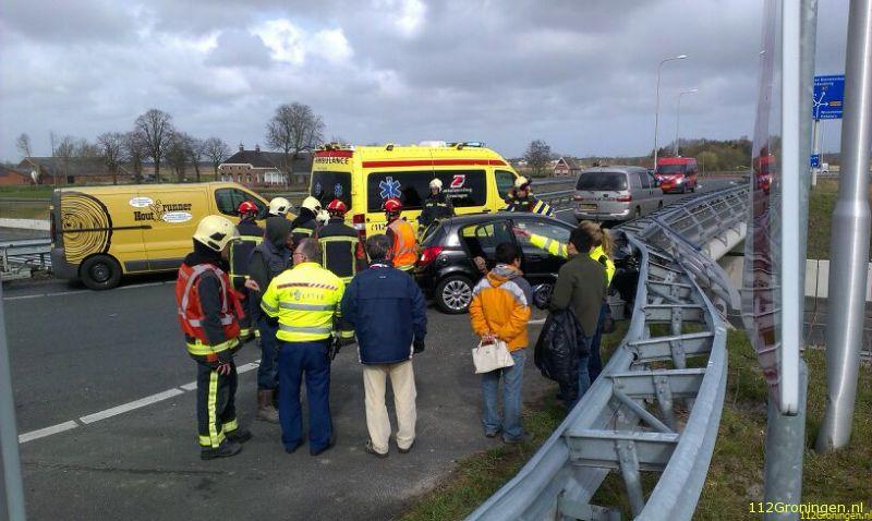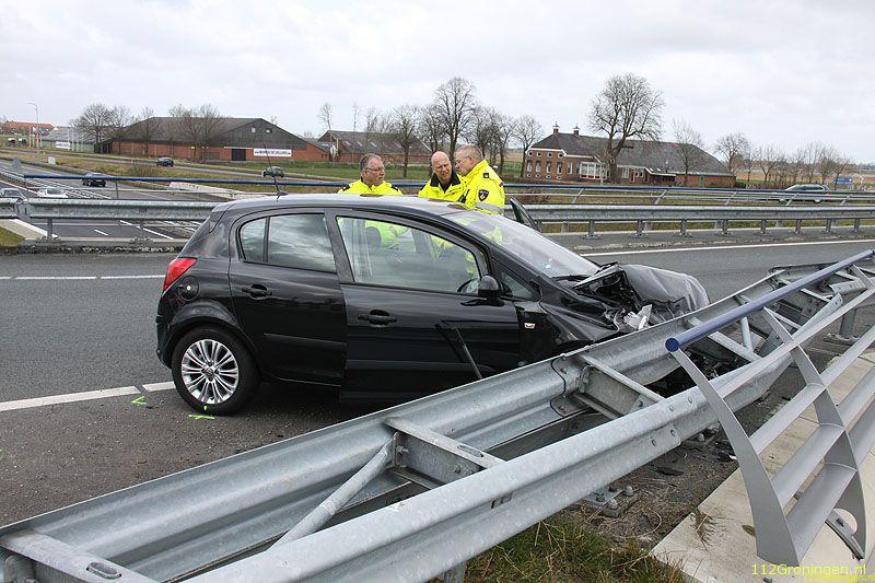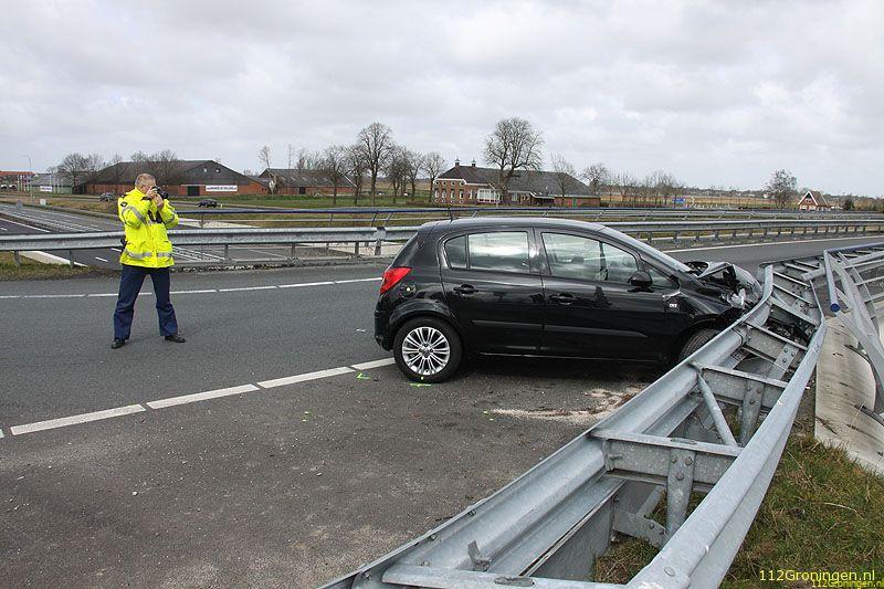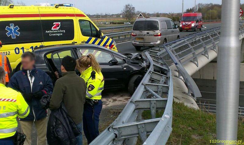 Winschoten - Bij een ongeval op de afrit van de A7 bij Winschoten is zaterdagmiddag één persoon gewond geraakt. De bestuurder van de auto miste op de afrit een scherpe bocht en botste frontaal op de vangrail.