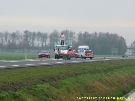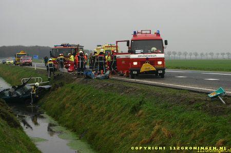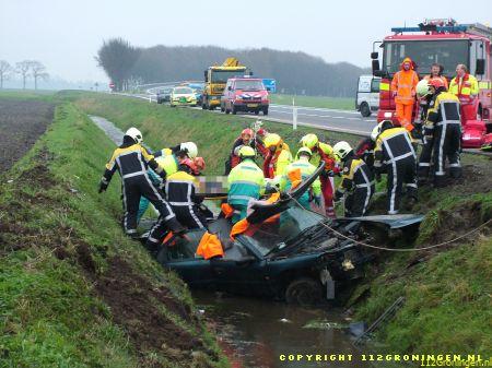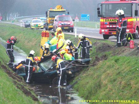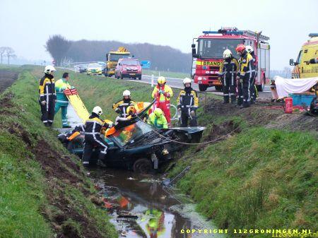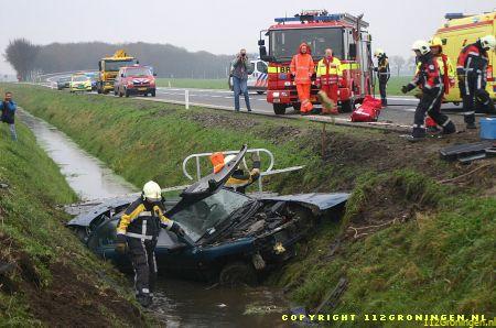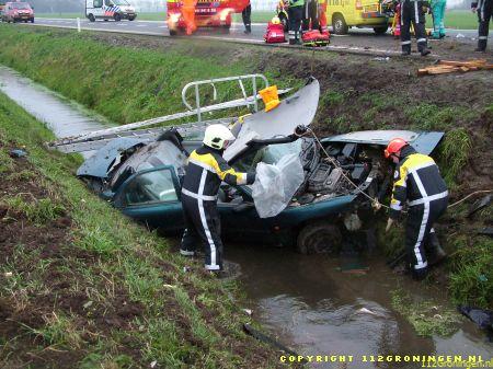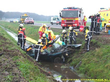 Een 34-jarige inwoner van Delfzijl raakte gistermorgen gewond toen hij op de rijksweg N33 ter hoogte van Noordbroek met zijn auto in de sloot belandde. De man was volgens getuigen bezig met inhalen toen hij in de linkerberm raakte. Na een stuurcorrectie schoot de wagen de weg over om in de sloot terecht te komen. De bestuurder zat bekneld en moest door de brandweer uit het wrak worden gehaald. Hij werd met relatief licht letsel in een ziekenhuis opgenomen. In verband met mogelijk alcoholgebruik is van de Delfzijlster een bloedproef genomen. (Timmer 1 t/m 6/M.Huising 7 t/m 14)