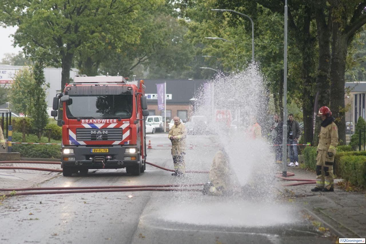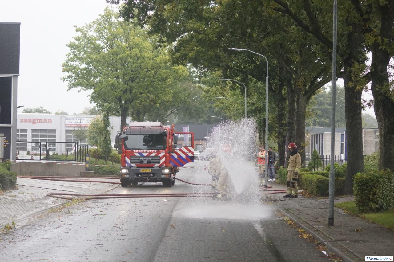 Door hevige regenval ontstaat er een temperatuur verschil, daardoor overdruk, hij blaast dan af via een ventiel zegt Geert Walburg van de brandweer Groningen. Er is geen gevaar.