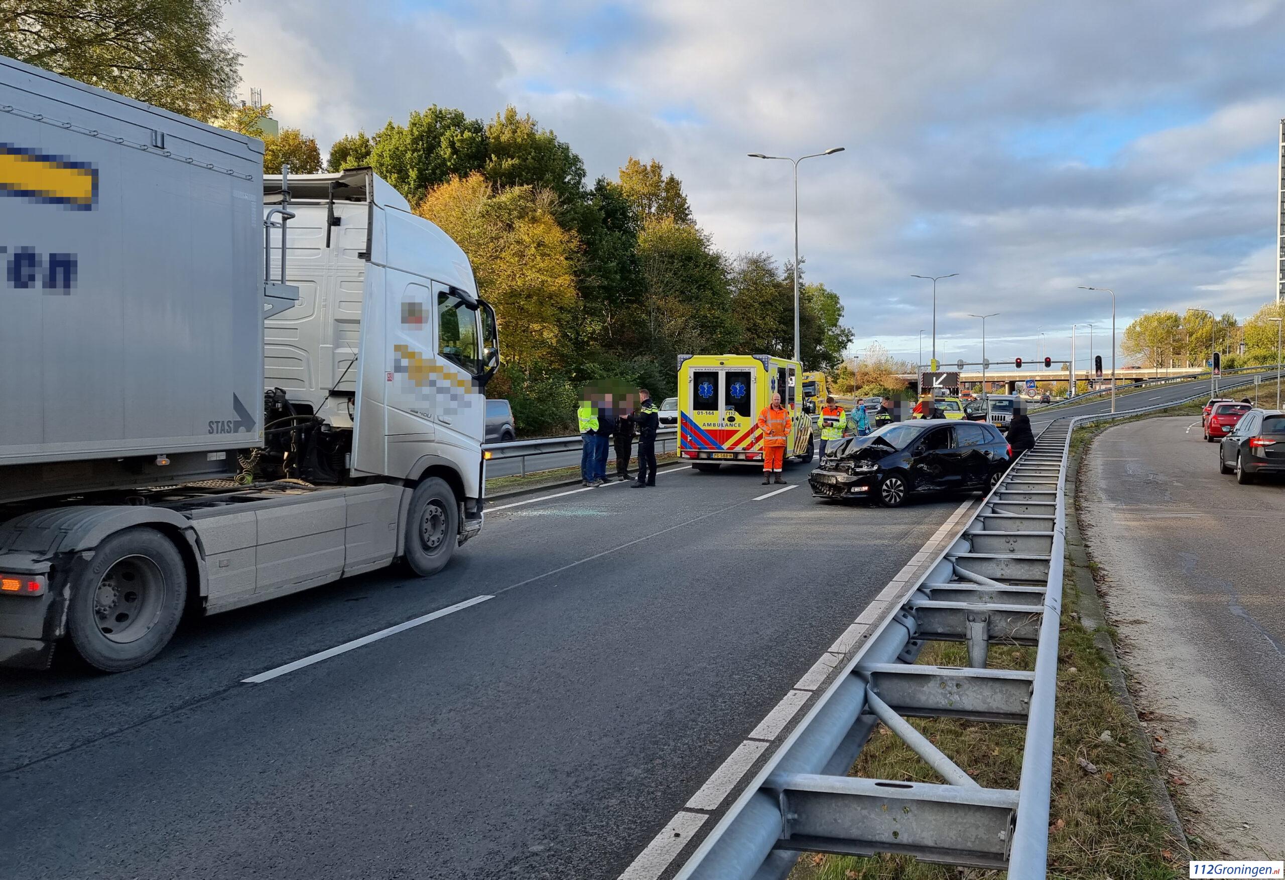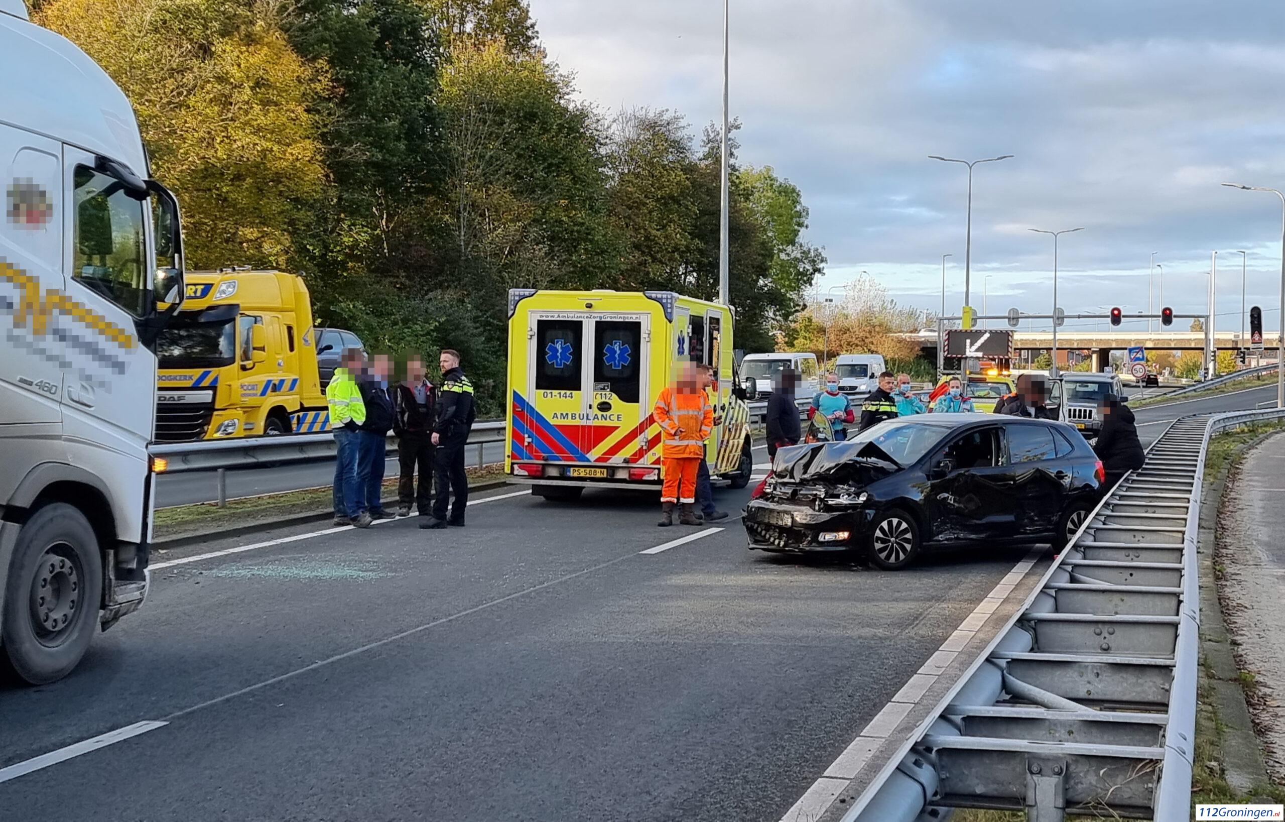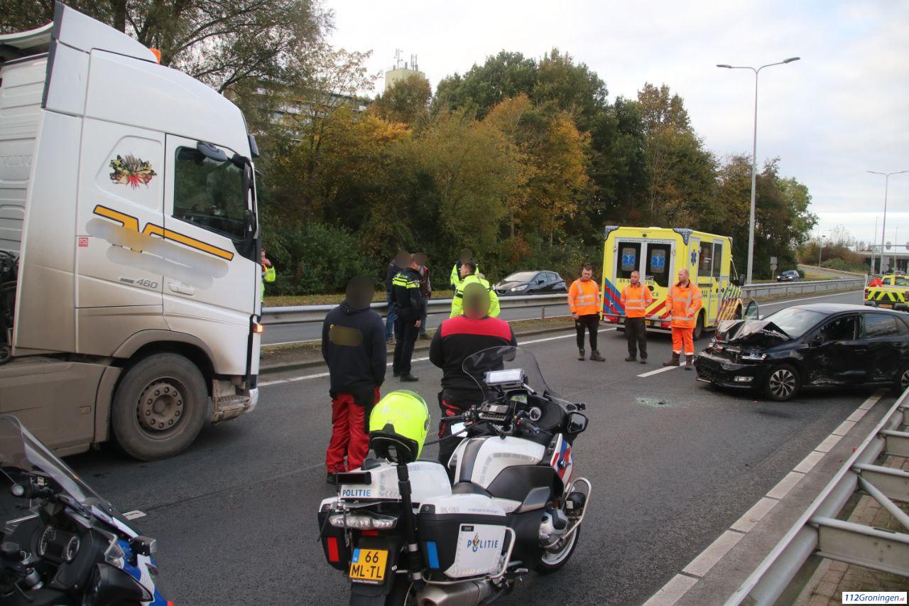 Twee inzittenden van de personenauto werden gecontroleerd op verwondingen door het ambulancepersoneel. Na een korte controle hoefde er niemand mee naar het ziekenhuis. Vanwege het ongeval werd de ringweg afgesloten vanuit de richting van Paddepoel in richting van Zuidhorn/Winsum volledig afgesloten.