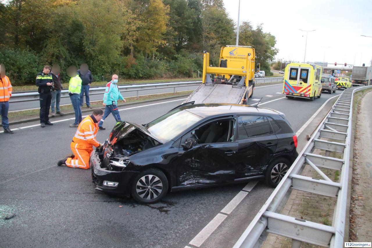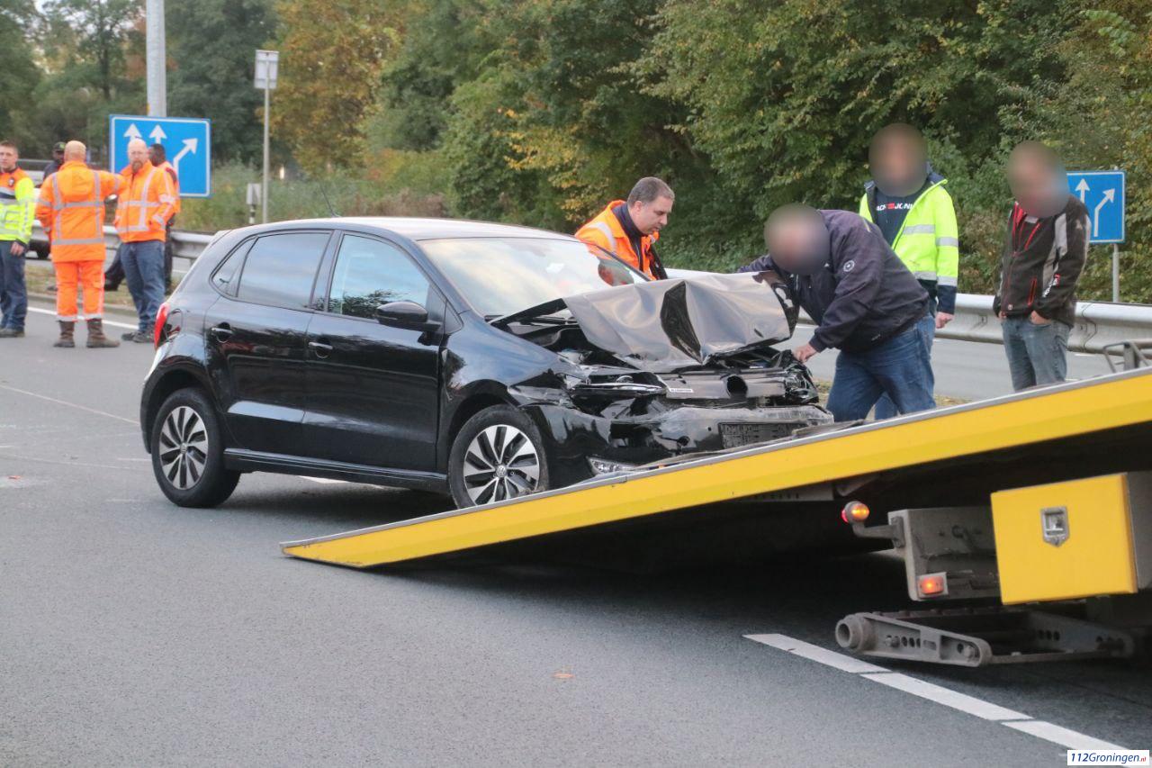 Het verkeer moest omrijden via de parallelweg. De personenauto raakte fors beschadigd en moest worden weggesleept door een bergingsbedrijf. Omstreeks half vijf kon de weg weer volledig worden vrijgegeven.