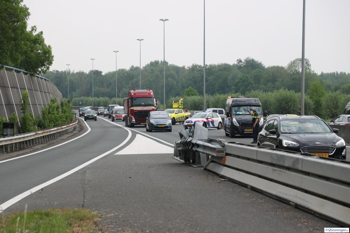 Groningen – Op de A28 nabij het Julianaplein is woensdagmiddag een auto tegen een zogenoemde RIMOB gebotst.