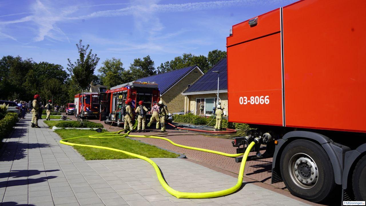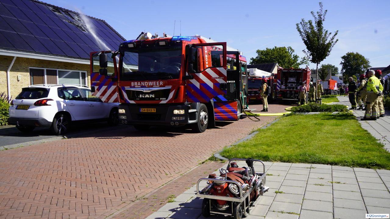 Roden – Een woningbrand aan de Peter van der Veldelaan in Roden. Een brand in woning met op het dak gemaakte zonnepanelen. Er werd opgeschaald naar middelbrand. Hoogwerker brandweer Stad assisteert de brandweer van Roden.