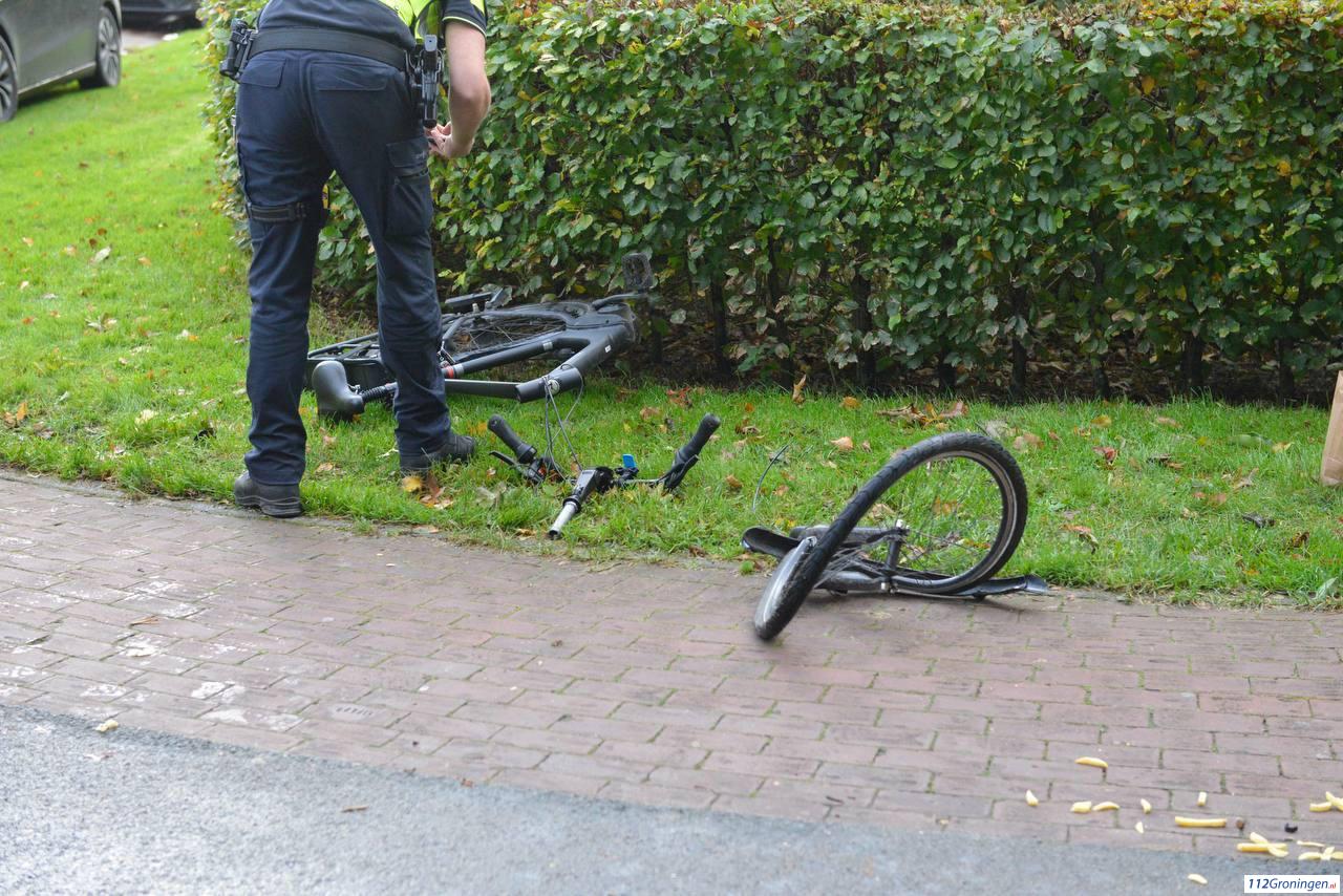 De fiets is door de botsing dwars doormidden gebroken. Politie heeft de straat afgezet en zal onderzoek doen naar de toedracht van het ongeval.