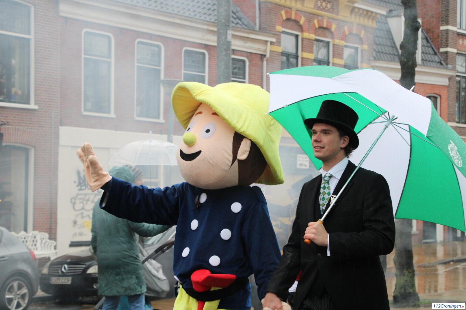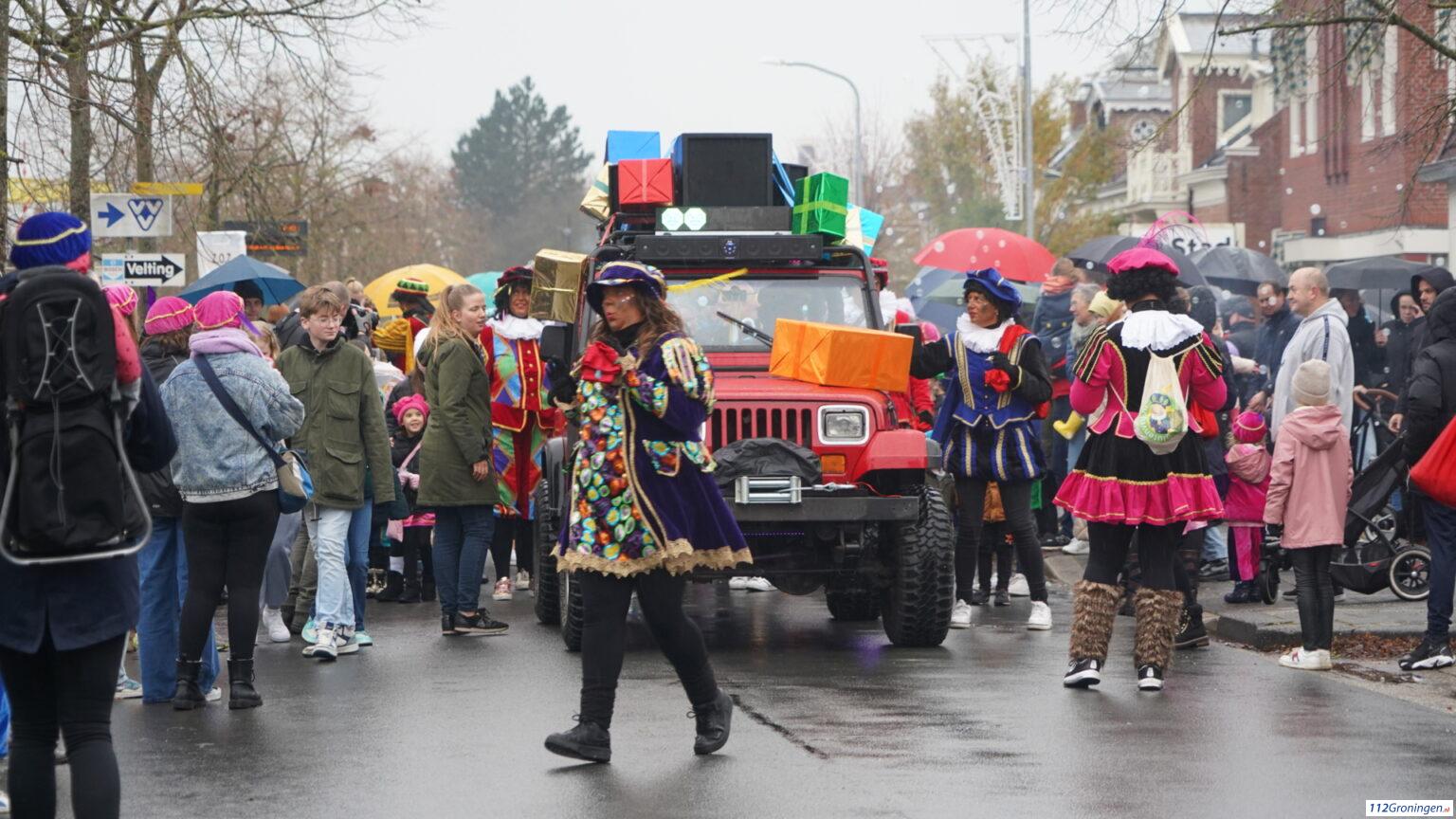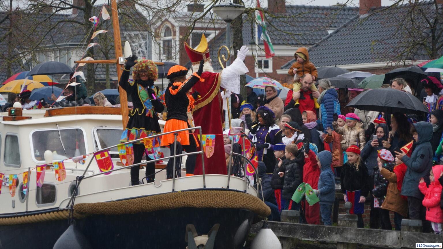 Ondanks het lange wachten en de regen waren de kinderen wel erg blij. Na aankomst in de haven van Leek/Nienoord is die met een stoet door het centrum naar een podium in het centrum gebracht. Daar werd het feest verder gevierd.