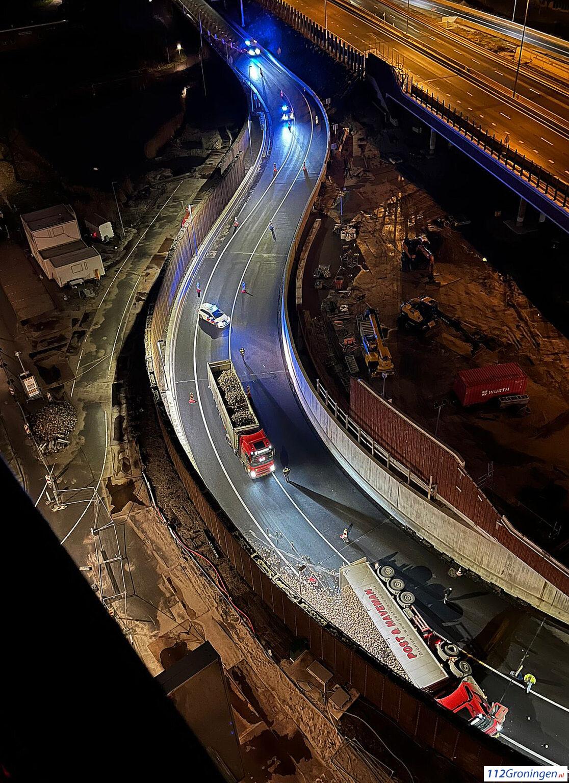 Rijkswaterstaat(Weginspecteur Lisa, foto klik hier) meldde dat de weg tot 07:00 uur dicht was vanwege de berging door berger Poort uit Hoogkerk.