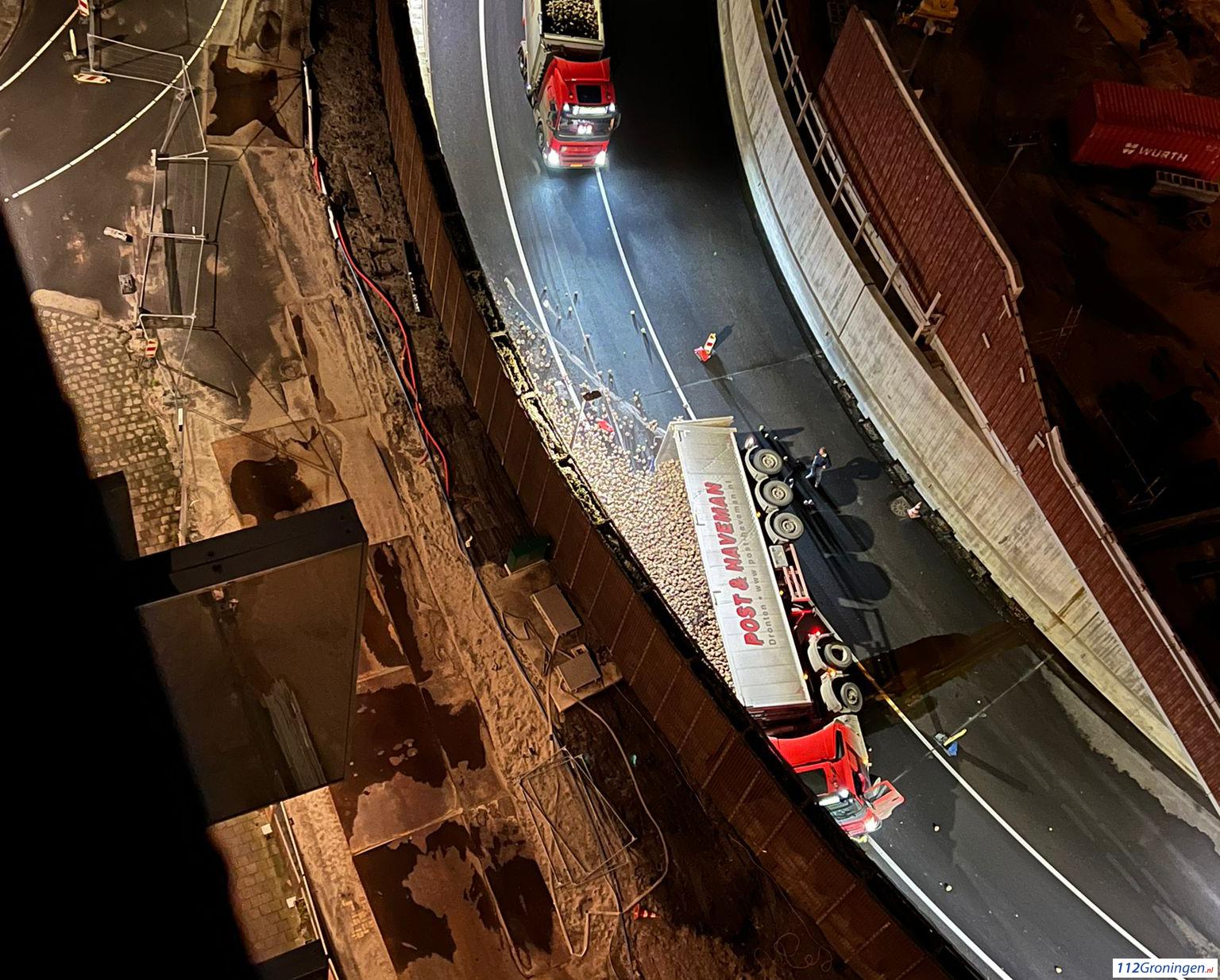 Groningen – Op de N370 is in de nacht van donderdag op vrijdag rond 00:30 uur een bietenwagen gekanteld in de lus van Hoogkerk naar Winsum. De chauffeur raakte niet gewond. De toedracht wordt onderzocht. De brandweer kwam ook even ter plaatse en bood hulp, er was geen sprake van beknelling. Rijkswaterstaat zette de weg af.