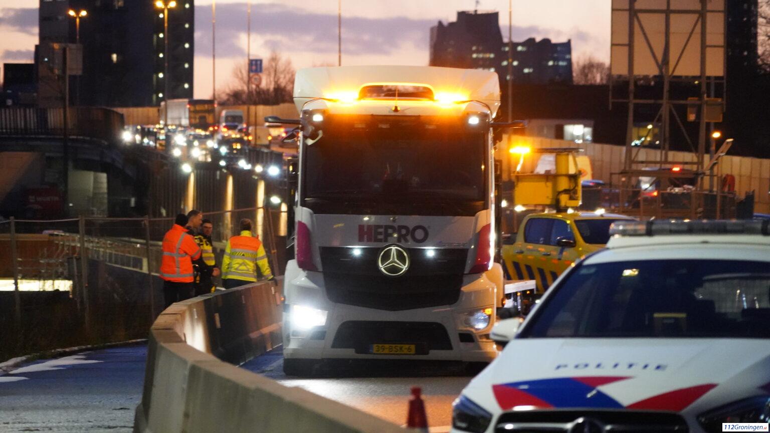Groningen – Een stilstaande vrachtwagen zorgde donderdag aan het einde van de middag voor veel oponthoud op de N7 tussen knooppunt Julianaplein en afrit zuidoost (Euroborg).