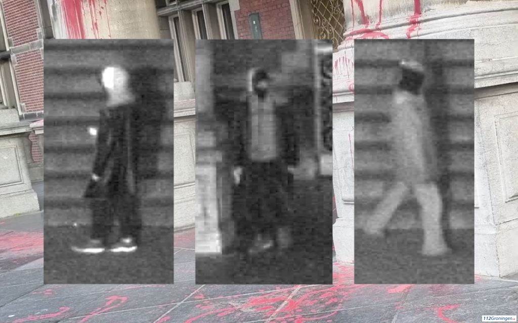 Groningen – De politie heeft woensdagmiddag camerabeelden naar buiten gebracht van de bekladding van het Academiegebouw, eerder deze maand. De beelden moeten tips gaan opleveren over de identiteit van de drie daders.