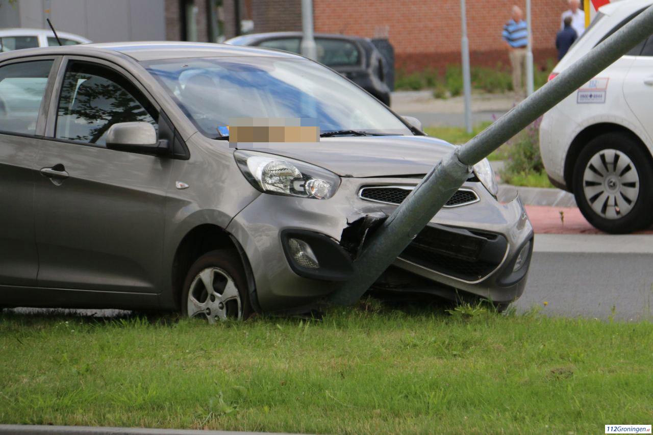Een automobilist vloog uit de bocht tegeneen lantaarnpaal, de bestuurder kwam met de schrik vrij . Vrouw op de bijrijdersstoel is meegegaan naar het ziekenhuis. Een berger kwam voor afsleep.