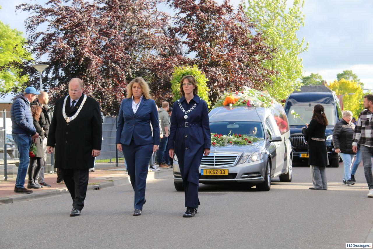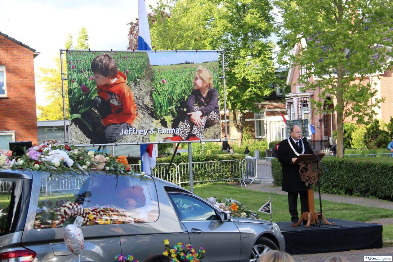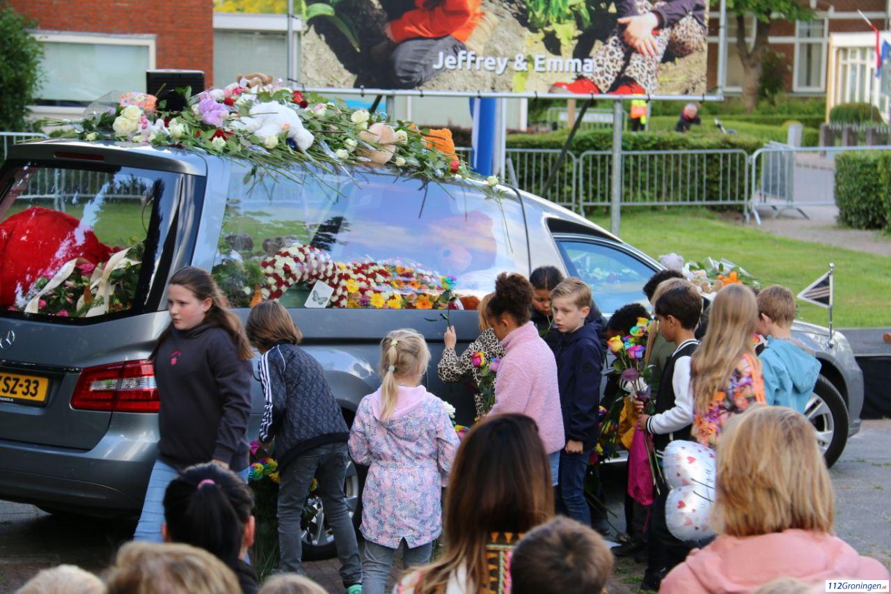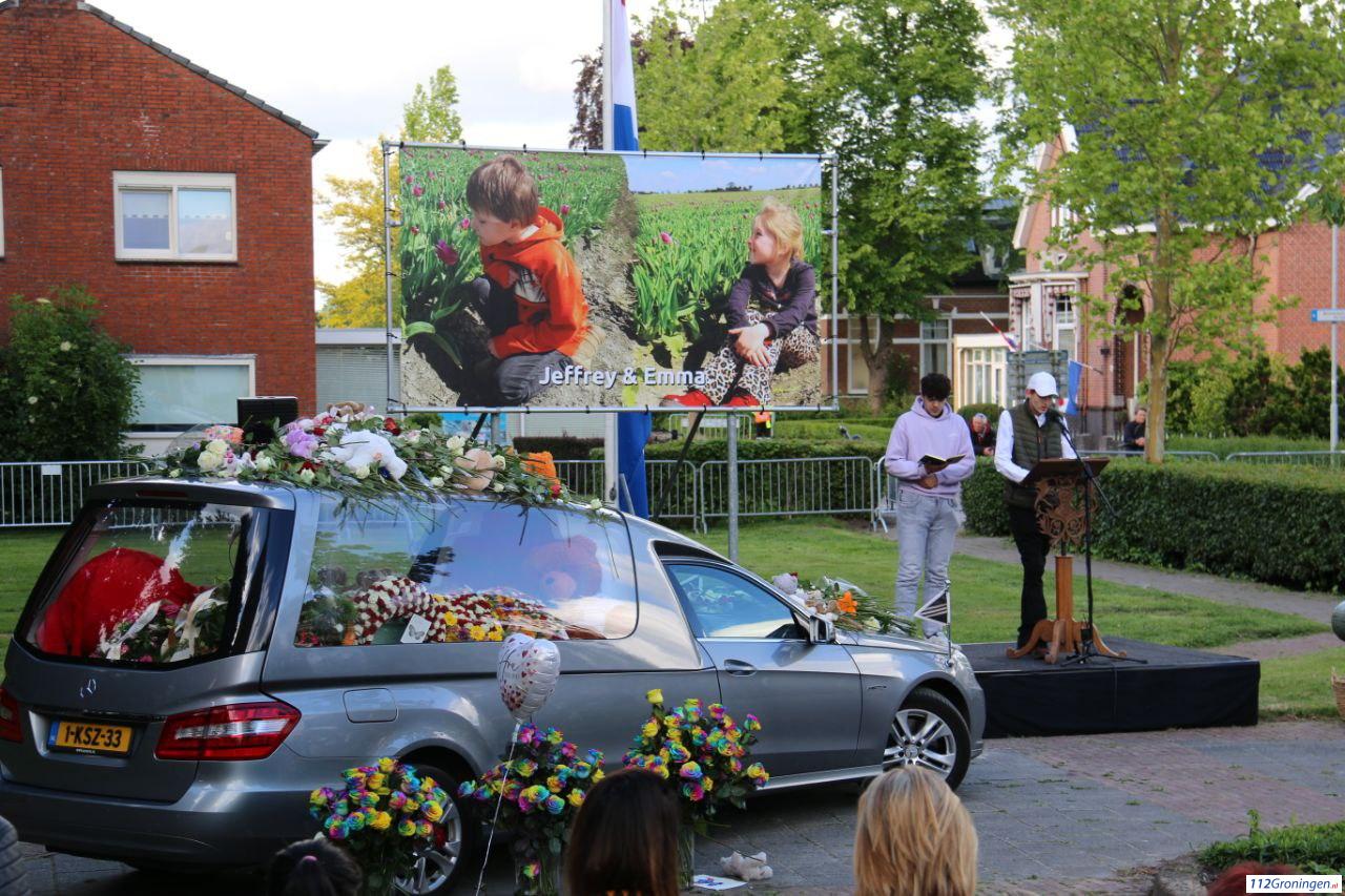 De rouwstoet werd geleid door een rouwauto, gevolgd door een bus waarin de naaste familie meereed. De route startte bij de kruising van de Veenweg en de Beatrixstraat, en liep via de Beatrixstraat richting de Schoolstraat. Langs deze weg kregen familie, vrienden, buren en betrokkenen de gelegenheid om afscheid te nemen van Jeffrey en Emma. Extra foto`s op Facebook 112Groningen.