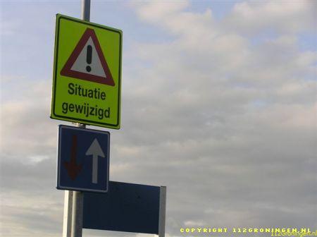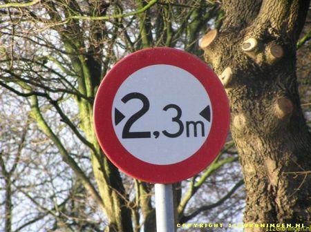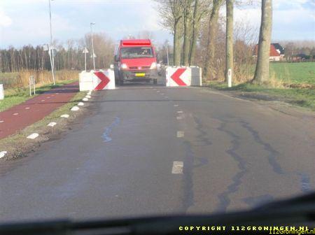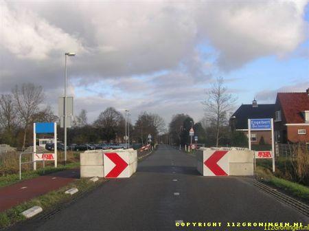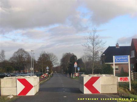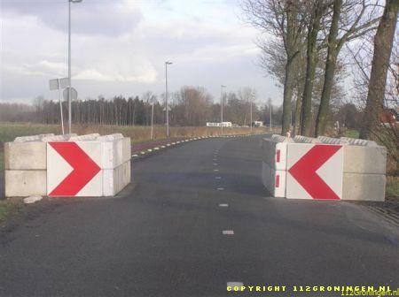 Op de Olgerweg tussen Groningen en Engelbert zijn betonnen wegversmallingen aangebracht om vrrachtverkeer tegen te gaan.