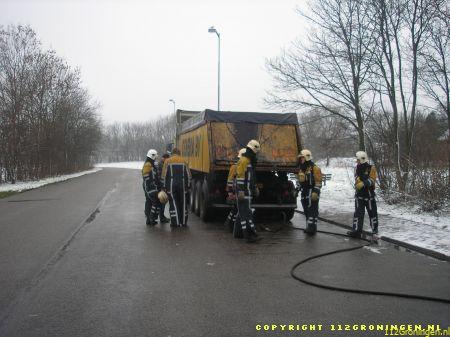 Scharmer/ Slochteren – Op de A7 bij parkeerlaats de Veenborg heeft korte tijd brand gewoed in een vrachtwagen. De remmen van de vrachtwagen waren vastgelopen en vatte vlam. De brandweer rukte met twee voertuigen uit en had de brand snel geblust.