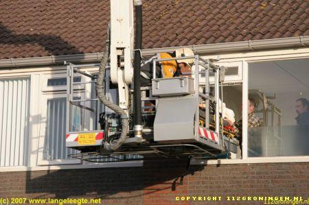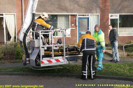 Aan de Cohenstraat in Wildervank was een vrouw met een niet nader bekend ziektebeeld. Omdat de vrouw op de bovenverdieping verbleef en met de brancard naar beneden gebracht moest worden, wat niet mogelijk was via het trapgat, werd de hulp van de brandweerhoogwerker ingeroepen. Rond 17.20 uur was de vrouw beneden waarna zij werd vervoerd naar het ziekenhuis.