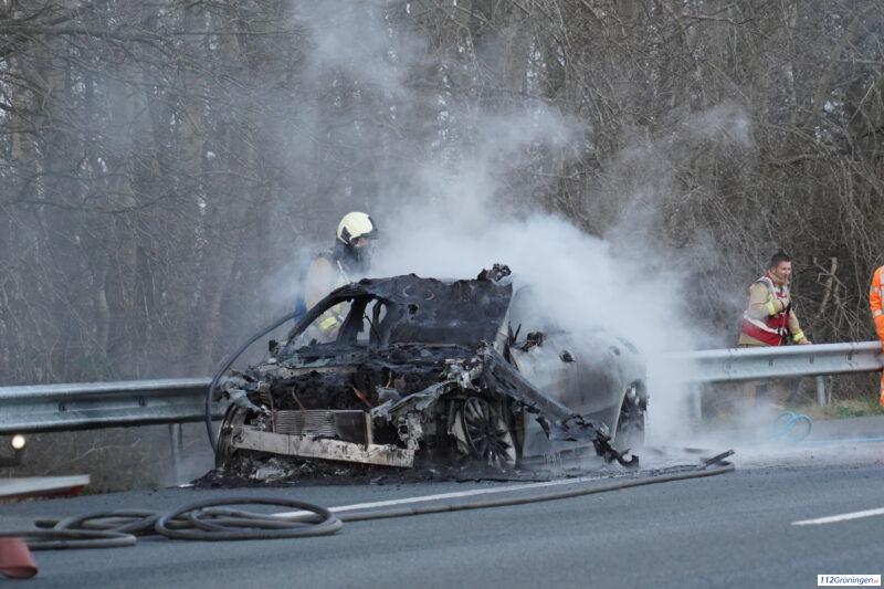Tynaarlo – Op de A28 ter hoogte van Tynaarlo heeft donderdagmiddag een auto volledig in