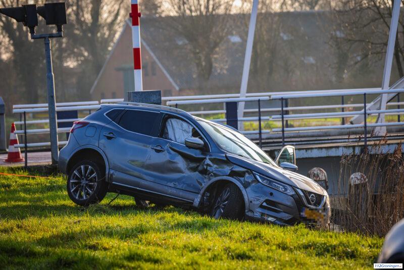 Auto belandt op de kop in sloot langs Delleweg in Stedum