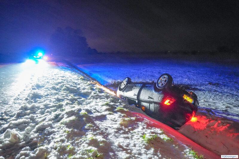 Zuidlaarderveen – Een auto is maandagochtend door gladheid van de weggeraakt op De Knijpe in