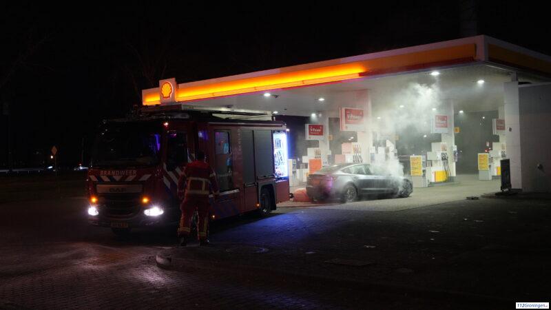 Groningen – Bij de Shell Europaweg heeft maandagavond een Tesla vlam gevat. Hulpdiensten waren snel