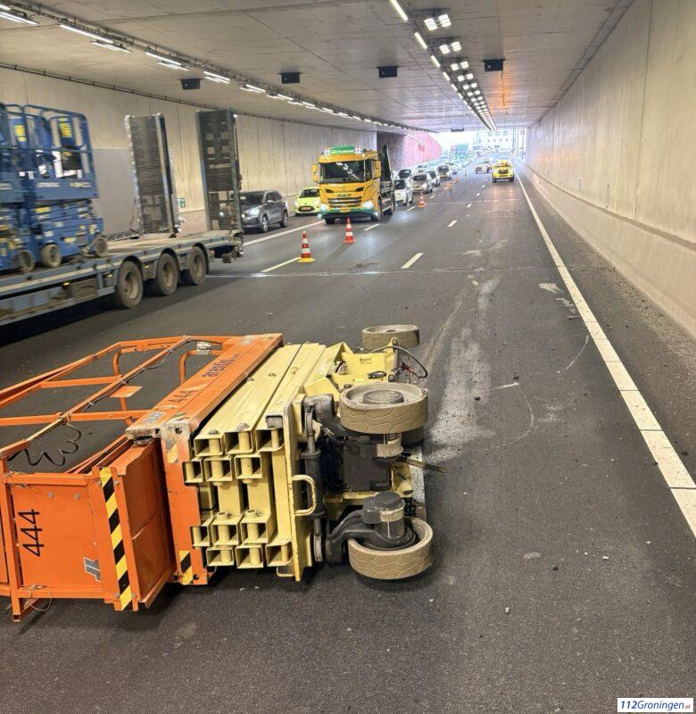 Vrachtwagen verliest hoogwerker en zorgt voor afsluiting rijstroken N7 (update)