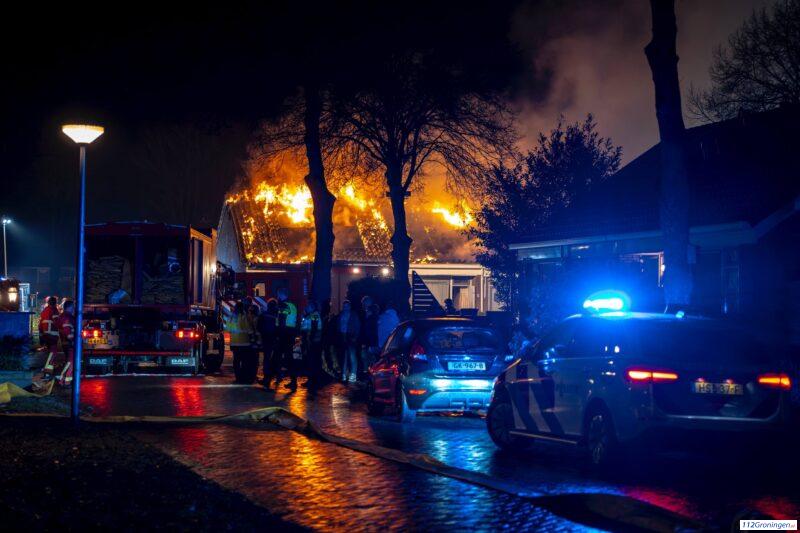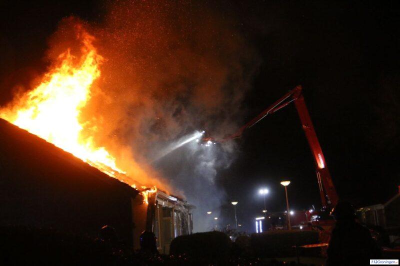 Grote brand verwoest woningen aan Lindelaan in Nieuwe Pekela (Video)