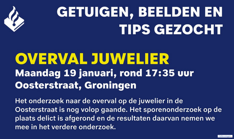 Groningen – Het onderzoek naar de overval op de juwelier in de Oosterstraat op maandag