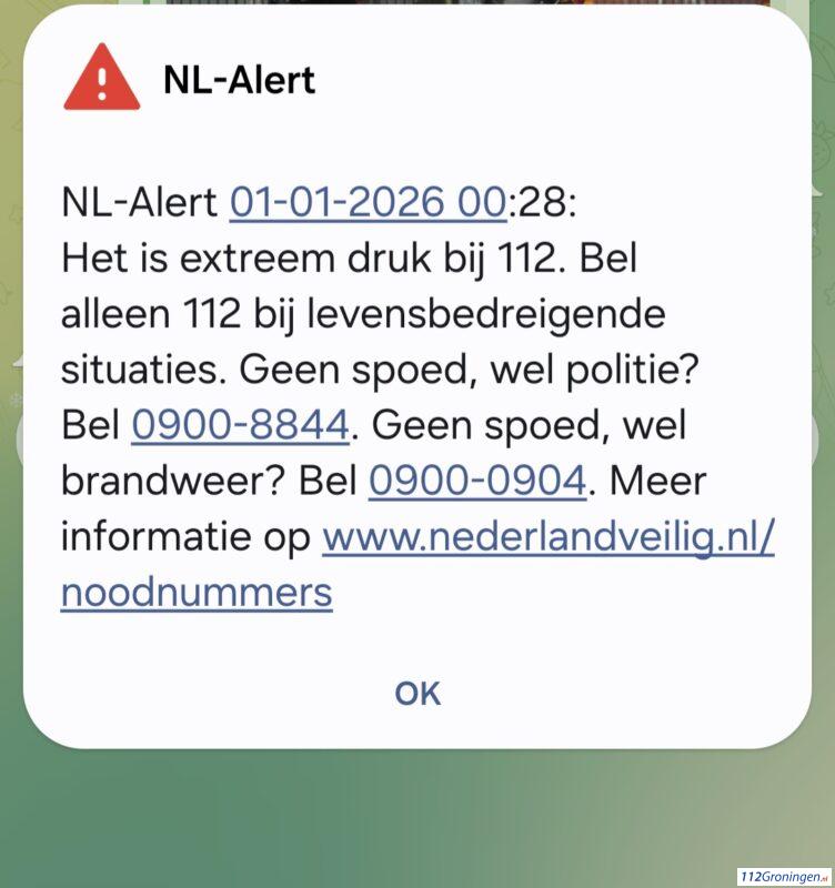 Groningen – Rond 00:30 uur gaf de meldkamer een NL Alert af. Bel alleen 112