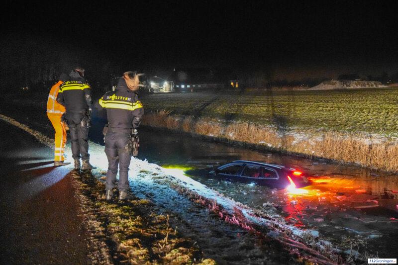 Auto in sloot bij Middelstum door de gladheid (Video)