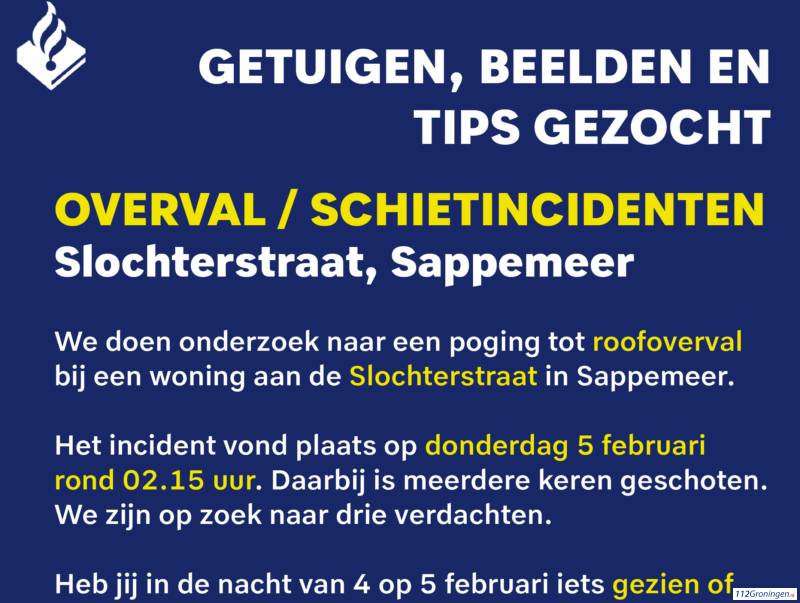 Poging overval Slochterstraat in Sappemeer, er is `meerdere keren geschoten`