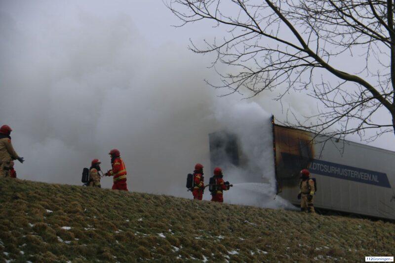 Forse vrachtwagenbrand op de N33 bij Veendam (Video)