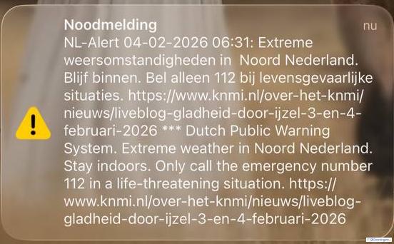 Instituut voor Publieke Veiligheid start onderzoek onder noorderlingen naar NL-Alert voor extreme gladheid